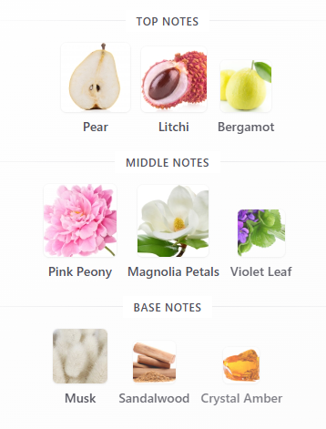 ミドルではマグノリアやピオニーなどのフローラルが重なり、