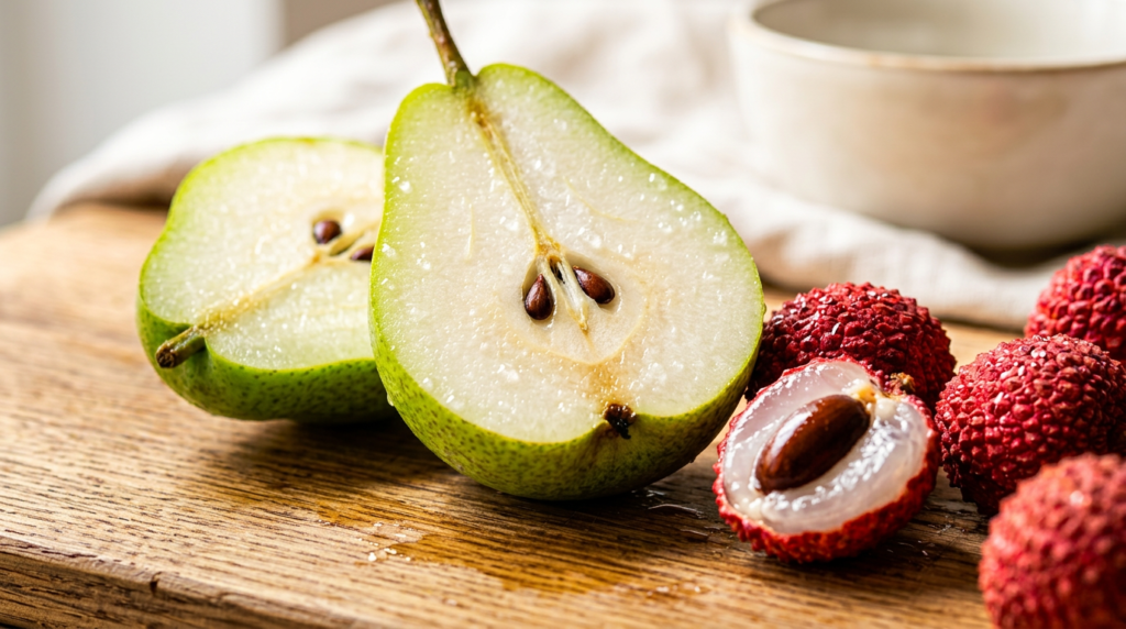 朝露のついた洋梨にかじりついたようなみずみずしさがあります。